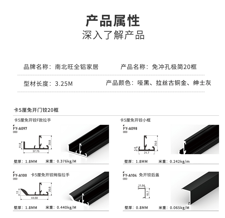 全鋁極簡20玻璃衣柜門材料 簡約免開門鉸20框型材廠家批發(fā)